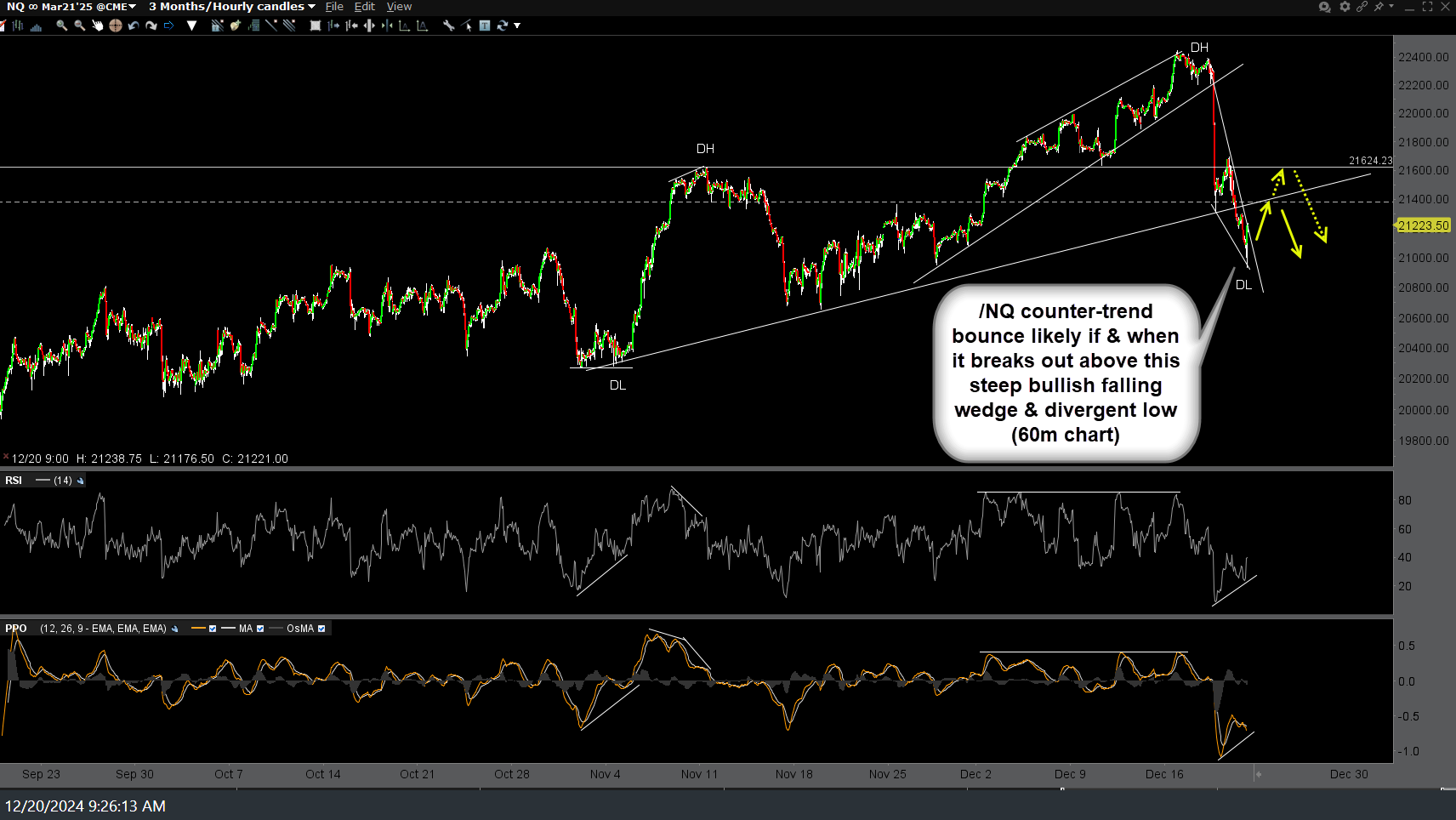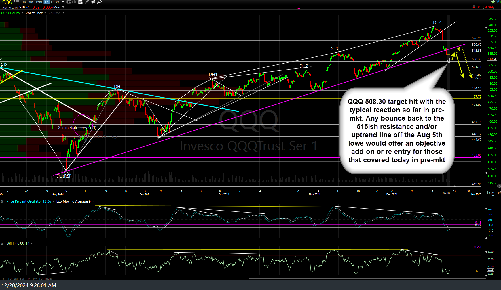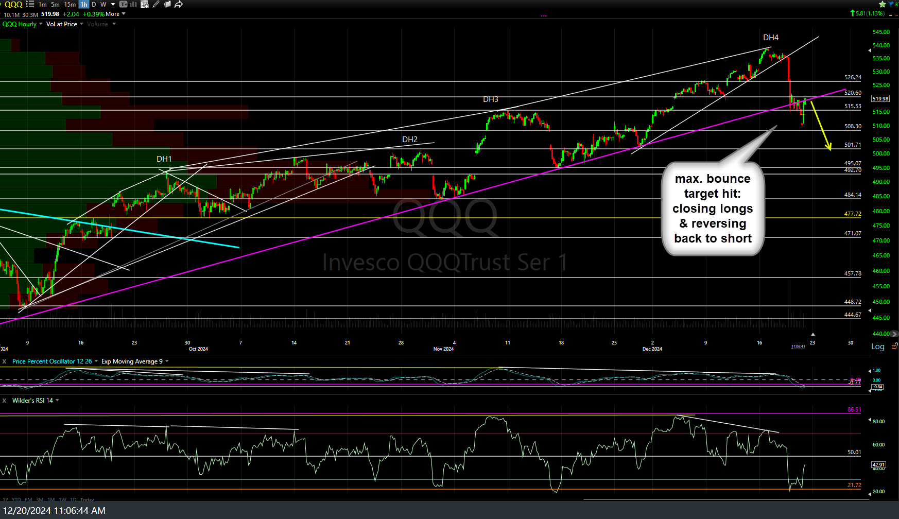 /NQ & QQQ have just hit my max. bounce targets. Closing longs & reversing back to short. Previous & updated 60-minute charts below.