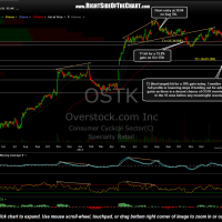 The OSTK (Overstock.com) short trade has now hit T2, the final target, for a 38% gain today. Consider booking full profits or lowering stops if holding out for additional gains as there is a decent chance of OSTK moving down to the 16 area before any meaningful reversal. Although the odds are decent for a continued move down to that support level, this will remain my final target & the OSTK short trade will be considered completed. OSTK is a great example of how longer-term swing trades can be just as effective on the short side as the long side. OSTK was originally shorted back on August 7th with the trade based largely off the weekly charts, which are helpful in identifying potential trend changes (tops & bottoms) in a stock.