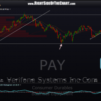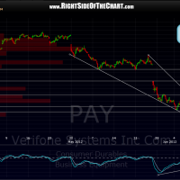 PAY looks like an objective long entry if it can break above R1 (1st resistance level) on this 60 minute chart. this was a stock i have shorted for some nice trades over the last couple of years but has now fallen to a decent support level on the daily chart while very oversold and with positive divergences on the intraday time frames (and a possible recent bullish falling wedge breakout on the 60 minute chart to boot). depending on one’s trading style and risk tolerance, i think an objective stop for a swing trader would be on a solid break or a close below that daily support line but again, i think it would be prudent to at least wait for prices to break above S1 on that 60 minute chart, especially since PAY is trading just below that level now. also make sure that you take (or pass on) trades that align (or don’t align) with your current market bias. personally, i am being very selective with new longs right now because i think the odds of a pullback are elevated but i might be wrong. even if so, a very good technical pattern can still play out if the broad market is moving in the opposite direction. i will continue to post the best looking set-ups, long or short, but you must decide which one’s fit your own trading style and market bias (long or short).