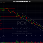 so far, we did get a high volume surge on the channel breakout but there was a lack of follow-thru and PCX has drifted back down along the channel, getting close to the original entry level. consider raising stops, depending on your entry. ideally, i’d like to see the stock start moving back up from here, especially on increasing volume. otherwise, i’ll probably sell 1/2 today before the close (assuming i’m not stopped out) and let the other 1/2 ride with stops in place.
