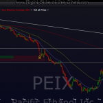 PEIX hit T1 today and on friday for a 44.4% gain (read the posts below and you will start to see a common theme amongst the active trades). i highly suggest booking some or all profits on this one and at least lowering your stops to protect profts if holding out for T2. chart in order as posted with today’s last.