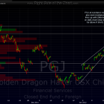 PGJ short set-up posted on tuesday broke down below the rising wedge pattern on the 60 min chart shortly after and is now re-testing the lower trendline while also at a decent horizontal support level.  see notes on the updated daily and 60 min charts below for an objective stop area on the trade if you took it or plan to enter this week.  although i still think PGJ is an objective short here, i will point out that i see a possible inverse head and shoulders pattern in the related FXI etf that, if valid, has completed formation and sits right on the neckline, close to a possible trigger. (IHS are bottoming patterns so an upside break would be bullish).  i’ve also included the $SSEC daily chart as well, as i give preference to the $SSEC index over the various etf’s which track various baskets of chinese stocks.