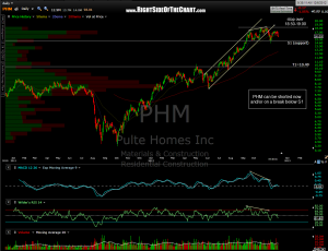 Similar to the previous posted LEN, PHM can be shorted now and/or on a break below the S1 support level. An idea stop would be somewhat above the recent highs, anywhere between 18.50 – 19.00. Targets marked on this daily chart.
