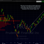 notes on charts. best to use both the daily and 60 min charts in conjunction on this trade. the horizontal support line at 54.75 on the daily would be the swing target on that frame. i will post some short-term target for the 60 min chart if that channel breaks down.