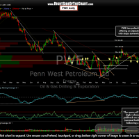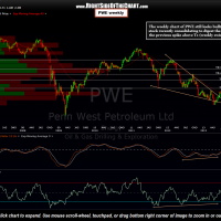 PWE has pulled back to support, offering an objective entry or add-on with stops somewhat below that level (daily chart). The weekly chart still looks bullish with the stock recently consolidating to digest the gains from the previous spike above T1. Note, this trade lists separate targets on both the daily & weekly time frames (for longer-term traders & investors). Also note that the previous final weekly target (T4 at 18.50) has been removed with T3 (16.60) now being the final long-term target at this time. Updated daily & weekly charts: