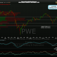 i am adding PWE to both the Long Set-ups and Active Trades categories as well as the Long-term Trades category.  PWE was chopped nearly in half from it’s 2012 highs but looks to have found some support at the recent lows and might be carving out a bottom here.  although i never buy stocks solely for a high dividend yield (as dividends can be cut at anytime, causing the stock to plunge), PWE does currently offer a very attractive yield, which makes this a decent candidate for a long-term swing trade or investment.  my preference is to buy the high-yielding, longer-term trades in my IRA to avoid the tax liability from the income generated.  also keep in mind that PWE is a canadian oil trust, and as such, might have additional tax implications for US citizens holding the stock in a taxable account (as dividends from most foreign stocks do).  stops below the recent lows, targets marked on the weekly chart but a significant amount of the potential gains from this trade (if held as a longer-term investment) would come from the dividends, assuming they are not reduced significantly.