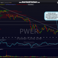 PWER has hit the first target and is now a 25% gainer from entry less than 3 weeks ago. consider booking partial or full profits and/or raising stops, depending on your trading plan. T2 remains the final target on this trade although i should point out that large thin zone (see volume at price histogram towards the left of the chart) between T1 & T2. therefore, i’d say the odds are pretty good that the stock either pulls back soon and/or once prices enter that thin zone, it could be filled rather quickly.