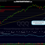 here’s the updated 120 minute QQQ chart along with the last one posted on friday. as you can see, we gapped down from the bearish pennant (also on the SPY) on monday and prices moved back up to made a re-test of the pattern from below where they turned back down and found support on that key uptrend line. watching that line closely as once/if prices break below it, the next wave of selling will likely be ushered in. with today being wednesday, barring any negative economic news between now & friday, the market could possible hold up until the FacePlant IPO (yes, my thoughts are that IPO will fall flat on it’s “face” and if so, that could be a major psychological blow to the market). however, even if FB holds up or closes up big on friday, which is common with most hot IPO’s, the true test will be to see what the follow-thru buying (or selling) looks like over the next couple of weeks. i will also be curious to see if FB acts like a vacuum, sucking $$ out of AAPL as both stocks probably attract the same type of retail buyers. 60 min QQQ follows the 120 min charts below to give a zoom-in of the recent technical action.