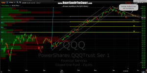 here’s the updated QQQ 4-hour chart showing a couple of overhead resistance levels to watch for tomorrow: horizontal resistance at the top of the 4/20-4/23 gap (65.58 area) and the downtrend line from the 4/3 highs (should come in around the 66.50ish area tomorrow.