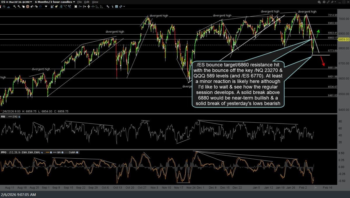 I figured I’d pass along my current thoughts before the market opens today. The first chart & comments below were my thoughts I posted in this comment reply to @EMFO shortly after the close yesterday regarding my expectations for a bounce into the overnight session & into today, as the market had just fallen to a very key support level: