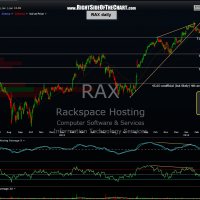 RAX has now hit the final (unofficial) target for a 38.3% gain in just two months. A great example of how most stocks fall much faster than they rise and why expanding one’s trading or investment style to incorporate both long and short-side trades can increase your trading opportunities and enhance your returns. For those still short, consider booking full profits as the risk/reward to remain short is no longer favorable. Daily charts in order as posted with the updated chart last.