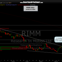 maybe some following the stock were able to catch it and if so, congrats. other than a nice educational example for future reference, i point this out as a solid move over T1, now resistance, could provide another objective entry or add-on. volume was well above average on the recent breakout so i will continue to keep RIMM on my radar as a potential long-term trade. however, i still believe that the overall R/R in the market highly favors the short-side right now and as such, i am not adding RIMM as a setup here (or as an active trade if it breaks above T1). of course, those of the bullish persuasion, especially longer-term swing traders or investors, might want to keep an eye on this one in the near-term. updated daily chart and zoomed in chart with notes below: