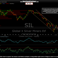 SIL has already hit the bottom of the first target zone for an 18.5% gain in just one week from the last entry posted on August 6th. It’s not very common to see an non-leveraged etf gain so much in such short order. Therefore, consider booking partial or full profits and/or raising your stops depending on your trading plan. Previous & updated daily charts:
