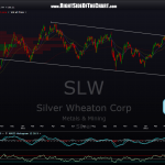 SLW was first posted as a bearish set-up about 26% ago on april 5th (first weekly chart below). as the updated weekly chart shows, the stock since lost that key weekly support line and is trading smack in the middle of that thin zone, that will most likely be filled. however, i just noticed a possible downtrend channel forming on the daily chart which prices closed on the bottom of today. therefore, SLW could bounce here and slowly work it’s way down that daily channel towards the weekly target over time. for those in the trade, i’m sorry that i didn’t not notice this earlier although i will say that until we see a reaction off the bottom of that channel (current levels), it is only a potential channel formation. prices could very well just keep falling tomorrow and throughout the week.