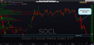 although they didn’t have any shares of FB available for me to short on the day it started trading (may 18th) they did have some SOCL (social media etf) come available shortly after FB started trading, which i took advantage of (i first posted they were not available right after FB started trading and then posted that they were available once again shortly thereafter). this etf doesn’t have a lot of trading history to chart and i’m watching it closely here as it approaches what little support that can be inferred from its relatively brief chart history. i would not advise entering a short of SOCL here as it is very extended in the short-term and could put in a bounce soon. however, a move below that lower line, especially after some type of bounce or consolidation to help alleviate the near-term oversold conditions, might provide and objective short entry.