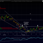 SPG could finally be starting to break that sub-channel uptrend line but we need to see it continue to move lower from here, preferably with some impulsive selling or a solid close below that line today. if/when that happen, the SRS trade should start moving up nicely (although it’s still up 5% from entry, which was the 60 min falling wedge breakout).