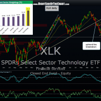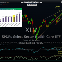 Here’s a look at the daily & weekly charts of the three largest sectors in the S&P 500 index; technology, financials and health care. These top three sectors make up nearly 1/2 of the index so where they go, the market likely follows. As you can see below, all three are at or approaching key levels.