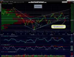 as mentioned recently, a break below the 7/12 lows would mark an official end to the uptrend that began with the 6/4 lows. note how that level also hits at least 4 gaps in just the past month or so as well as several reaction lows/highs, lending further validation to that support level. i would expect it to be defended by the powers-that-be but with AAPL earnings on deck, anything goes. there are times where a trader has two options if unsure of an almost certain market moving event, such as a fed rate announcement or AAPL earnings release; go to cash/hedge or take a stand. i may eat crow and give back some nice profits tomorrow but i am sitting tight with my shorts and will continue to give them some room on the stops for the upcoming volatility sure to accompany AAPL’s earnings report after the close today. anyone adverse to volatility and risk might consider lightening up or hedging before the close today.