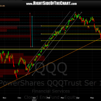 looks like an objective area to start scaling into some index shorts for a pullback trade (possibly more) with stops just above those horizontal yellow lines. 4 hour SPY & QQQ charts: