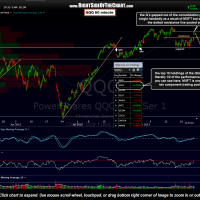 Interesting to note today that although the QQQ did manage to gap above the aforementioned consolidation zone, it did so virtually SOLELY as the result of MSFT’s big pre-market induced pop on news that Steve Ballmer plans to retire in the next 12 months.  First of all, not the kind of news that warrants a nearly 9% gain in such a massive mega-cap company and secondly, the fact that MSFT is only one of three of the top ten holdings in the QQQ actually trading positive today.  Keep in mind that the top ten holdings in the QQQ make up literally half the gains of that index tracking etf.  That alone is a warning sign that this breakout is not very likely to stick unless we see breadth start to improve with some other stocks in the index begining to participate in the rally.  It’s also worth noting that MSFT did (so far) stop cold and reversed at the expected resistance level (dotted line) posted yesterday.