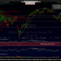 Putting the QQQ aside, so far the SPY has stopped cold at the resistance line defined by the July 11th gap while the IWM managed to gap above it’s key resistance line (largely due to the pre-market momentum given to the futures from MSFT’s news) but that gap was immediately faded and IWM fell right back below the resistance level and has remained below so far today.  My primary scenario still has a resumption of the current short-term downtrend beginning as soon as this oversold bounce runs it’s course. My best guess is that we are at or near that point but we’ll just have to wait to see what the rest of the day brings although being that it’s Friday, this story just might have to be continued next week. The bottom line is that the US markets still have significant overhead resistance levels to content with on the intraday charts while the long-term technicals continue to indicate that more downside is likely over the next few weeks to months.