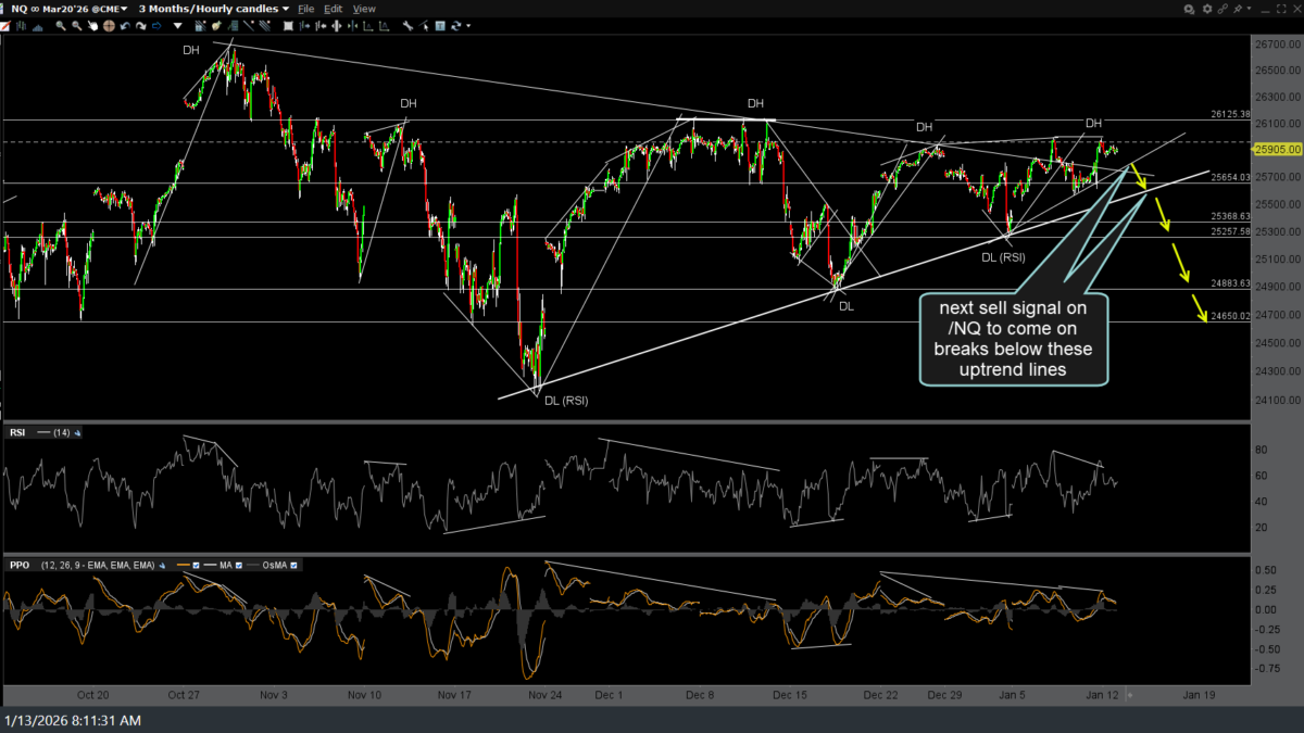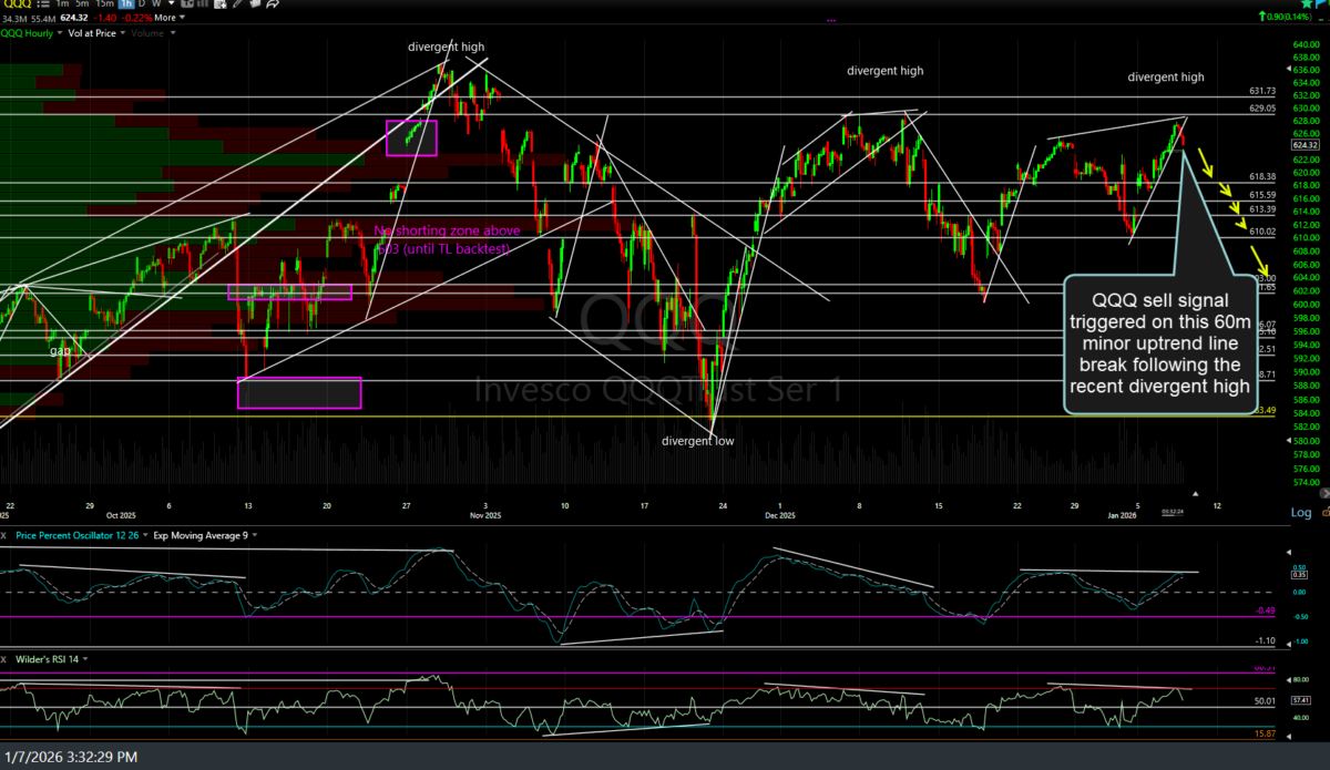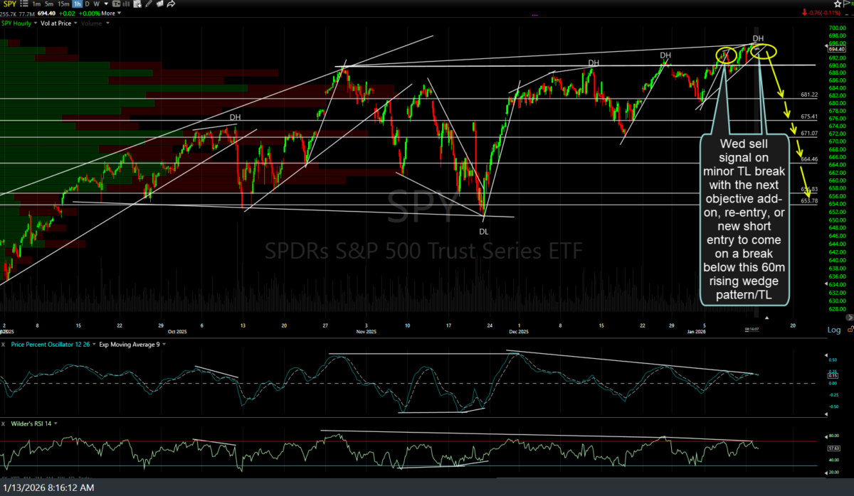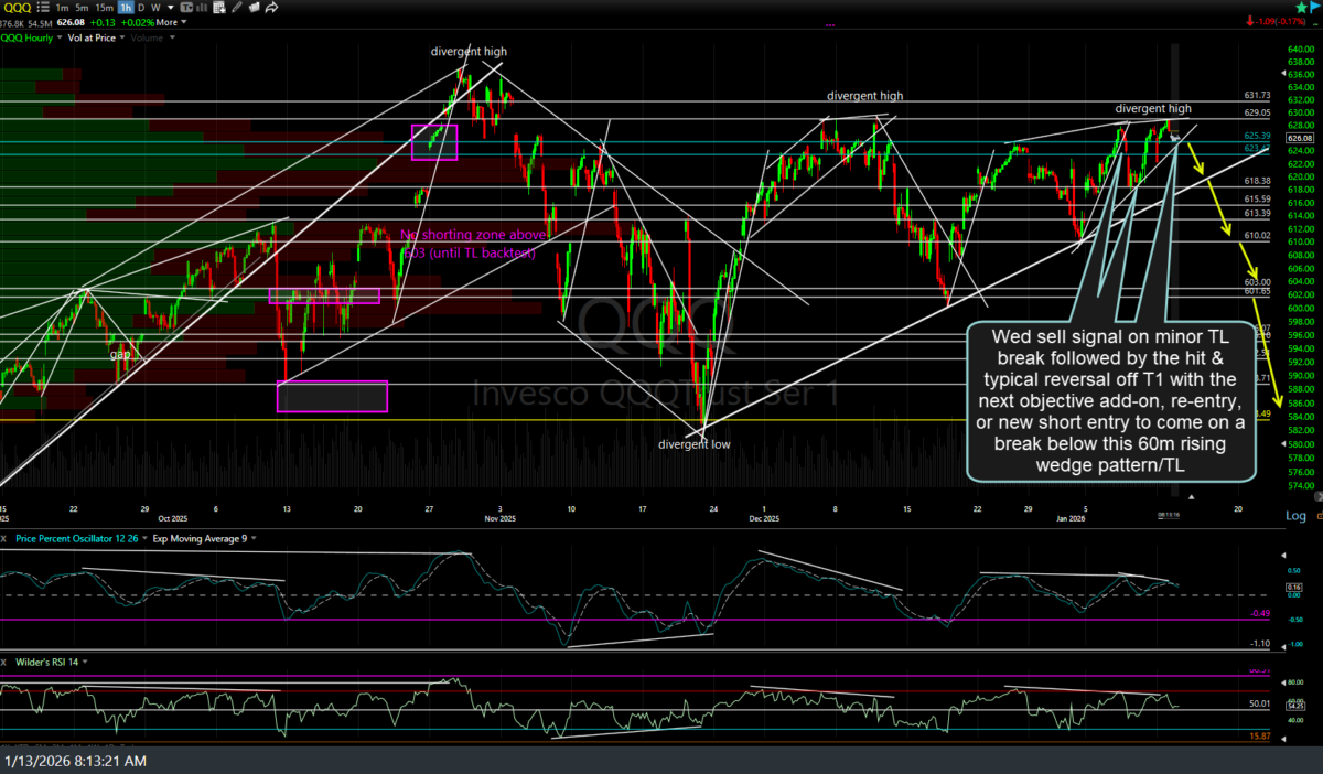I figured I’d throw these out there before the 8:30am CPI release (which I suspect will come in hot/above expectations). Previous (Jan 7th) & updated 60-minute charts of QQQ & SPY along with the updated 60-minute charts of /NQ & /ES with annotations & key technical levels/developments to watch for below.