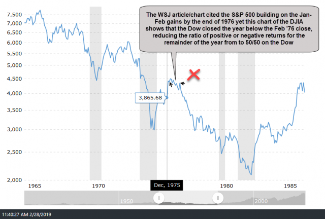 For reference, I have posted some of those charts below. Also worth noting (and not mentioned in the video) is the fact that the of the 6 previous times when the S&P 500 started the first two months of the year with a gain of at least 10%, as per the chart referenced in the video, the market ended up building on those gains into the end of the year 4 out of the 6 times whereas the Dow Jones Industrials closed the year below its February close in 1976, thereby resulting in 50/50 split of the market either building on the Jan-Feb rally or fading it by year-end.