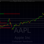 it is this type of dynamic that leads to the very fast, very powerful sell-off that are very hard to get out of the way of if long (as stop-limit orders often get passed by without triggering and stop-loss orders often get filled at prices well below the stop (trigger) price. usually, like just before the flash-crash in may ’10, we get a few “shots across the bow” like this, sort of akin to the minor tremors that sometimes precede a major earthquake. by itself, that intraday plunge means nothing. however keep an eye on some of the other “untouchables” (CMG, INTC, AMZN, etc…) for similar potential warning signs. here’s a 15 min chart of AAPL showing some of the more minor support levels below but if my suspicions are confirmed, any downside on AAPL and the NDX will likely lead to a vicious cycle of selling that accelerates as it goes, as one layer of stops being hit will lead to the next layer getting hit and so on and so forth…. i.e.- a domino effect.