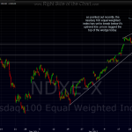 … is not just a classic tom petty song but also something i try to remind myself when the risk-to-reward profile of taking new long-side break outs is just not favorable at times like this.  many stocks have big moves just before and right into market tops or corrections, which may or may not be as close at hand as i think.  however, trading is all about making objective trades and making sure that the upside potential (reward) is at least several times the potential downside (risk).. i.e. the R/R ratio).  as many of the current red flags in the market have already been highlighted here, and i’m sure elsewhere, there’s no need to repeat them here tonight.  nor is there any point in updating the longer-term index and VIX charts, as although it might not seem like it, the market has gone basically nowhere in the last week (the nasdaq is slightly higher while the most diversified, and representative indexes like the S&P500 and Wilshire 5000 are below their highs made last thursday).  so basically, the broad markets have so far stopped at that multi-year downtrend line resistance.  are they just consolidating to digest the recent overbought conditions while building the energy needed to thrust out of this level or will the markets turn down from current levels and begin a new downtrend?  i’m sure that we all have our best guesses, as i do mine, but until we see at least some decent technical evidence that one or the other is likely playing out, i am keeping my trading light… hence the lack of trade ideas in the last couple of days.  i do, however, plan to comb thru the charts over the weekend to look for some new trade ideas as well as update some of the existing active trades.  i also plan to add a few sections to the site as well, which i will highlight as i add them.  for now, here are the 60 minute charts of the SPY, QQQ and NDX-E (nasdaq 100 equal weighted index).  good trading and please don’t hesitate to e-mail me any charts, articles, etc… of interest as i’m always looking for new ideas and varying perspectives on the market.