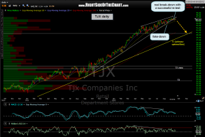 here’s the updated daily chart to the TJX active short, which nearly mirrors the recently updated ROST short, both technically and fundamentally (TJ Maxx & Ross; head-to-head competitors). therefore, keep in mind that these trades are likely to play out (or not) similarly.