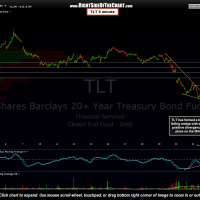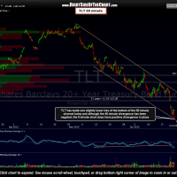 With that being said, I will not allow much more downside on this trade and for those already stopped out, a break above that 5 minute falling wedge might provide an objective re-entry not far from yesterday’s suggested stop level. Trading is all about being flexible and while some traders prefer very entry and exit criteria, my trading style is more flexible and adaptive to changing market conditions. I could remove TLT as the suggested stop was exceeded but I’d just end up adding it right back on as a new setup and so I will leave it as an active trade for now. Had I not been focusing on the existing & new equity trade ideas, I would have made a point to share my thought on TLT earlier. Updated 5 minute & 60 minute charts.