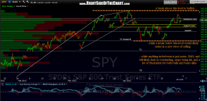 hence the primary reason that i haven’t posted the usual amount of long or short set-ups is because i’m currently not seeing many attractive looking trade set-ups and although i have my suspicions as to which way the market will break from the consolidation range that we’ve traded inside of for the last month, i would prefer let the bulls and the bears duke it out here until a clear winner emerges before positioning more aggressively. that will most likely occur when either the april 2nd highs are clearly taken out or support at the 4/10 & 4/23 double-bottom lows (SPY) is broken (dashed horizontal orange lines on this 60 min chart). one of the most important attributes of a successful trader is knowing when to trade but more importantly, when not to trade (or at least not aggressively).