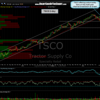 the TSCO short trade still looks very favorable to me. this short was entered about 4 weeks ago on the re-test of this multi-year ascending channel, which had recently broken down and has continued to ride underneath the channel re-testing it from below since. now, we have prices at horizontal resistance (the previous highs) with solid divergences put in place on the oscillators below. another example of an active short trade that is once again offering an objective entry (add-on or new short) at current levels with a stop somewhat (~3%) above the recent highs. previous & updated 2-day charts shown.