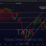 wash, rinse, repeat…. once again T1 has been hit for the TXN re-cycling short trade. of course this is just one stock but it helps to illustrate how one can make money even when a stock (or the stock market) goes nowhere in a sideways consolidation range, which is actually my alternative scenario going forward for the next few months. sideways markets eat up and spit out portfolio managers and most retail investors. technical analysis can actually shine during those times but allowing an active trader to make money by playing the ups and downs within a trading range.