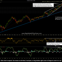 Since my call for a 5% correction in the markets last Friday, my updates have been focused on the intraday charts, specifically the 120-minute charts. However, it is always crucial to keep an eye on all time frames of any stock, sector or index that you are trading. Below are the updated daily charts of the $SPX (S&P 500), $NDX (Nasdaq 100) and $RUT (Russell 2000). Currently, prices on all of these major US indices sit right on or just below key uptrend line support, which is also the bottom of large bearish rising wedge patterns. The are the same wedge patterns that have been drawn on these charts for weeks or months now although I did modify the downside price targets on each index today.