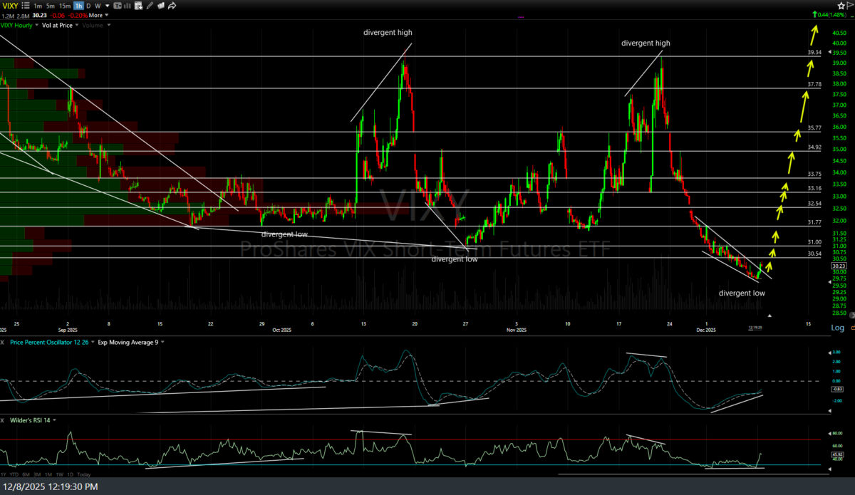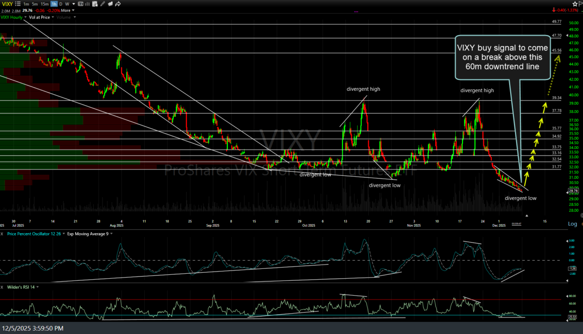 Previous & updated 60-minute charts of VIXY ($VIX short-term ETF) with a new initial short-term target, as well, for reference below.