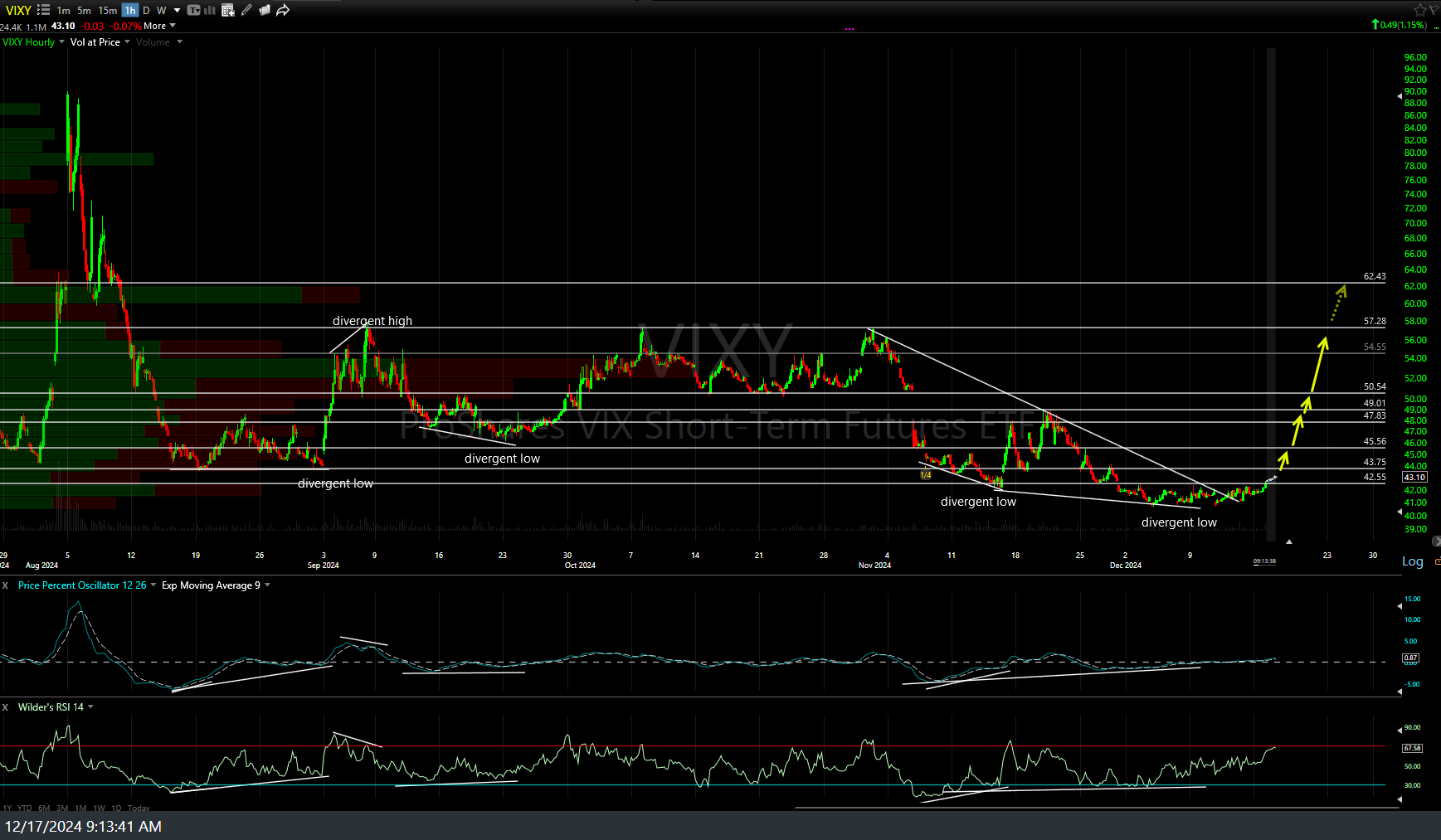 VIXY previous (Dec 10th) & updated 60-minute charts below for those that prefer ETFs over futures.