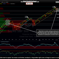 So far the recent bounce, as frustrating as it might be to those short, shows that the market is rapidly losing momentum as evidenced by the SPY daily charts below. Admittedly, this bounce has exceeded my expectations based on the intraday charts posted last week but we are still well shy of the mid-point of the channel and even the 61.8% fib retracement of the May 22nd – June 6th initial drop. As this point, I continue to favor a move down the the 147ish area on the SPY but will reassess if prices exceed the aforementioned resistance levels.