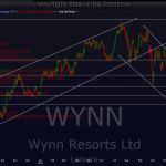 the WYNN active short, posted back on march 2nd, has hit T2 so consider taking some/all profits and/or lowering your stops, depending on your trading plan. i still favor at least T3 on this trade and have added an additional target (T4) to where that final support line was on my previous daily chart (1st one below).