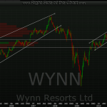 this one for aggressive traders only but i think WYNN offers a good R/R short right here (current price around 131) with an appropriate stop (maybe 4% +/-). it’s up big today on news while one of the pony-tails plus every other guest and commentator on CNBS are pumping it as a buy here (which only adds to my conviction on the trade). WYNN has slightly overshot my upper resistance level on the daily chart with today’s news induced momentum (i.e.- what i call a “momo-overshoot”) and remains on a solid sell signal on the weekly chart. again, aggressive traders only and as always DYODD but the way i see it, this trade offers about a 4% downside risk for about a 42% downside (weekly first target), offering about a 10:1 R/R ratio. i will say that the probability of getting stopped out for a loss is higher on this than most trades that i post here but the above average R/R ratio, or higher than average gain potential if successful pretty much washes out. daily and weekly charts below.
