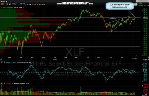 here’s the updated 4 hour chart to the XLF recent short trade. although i wouldn’t be adding to any shorts at this point, as the recent price action and upside momentum is just too strong right now, i would point out that prices remain below the top of the resistance zone. however, anyone preferring tight stops might consider closing the trade on a solid move above that level.